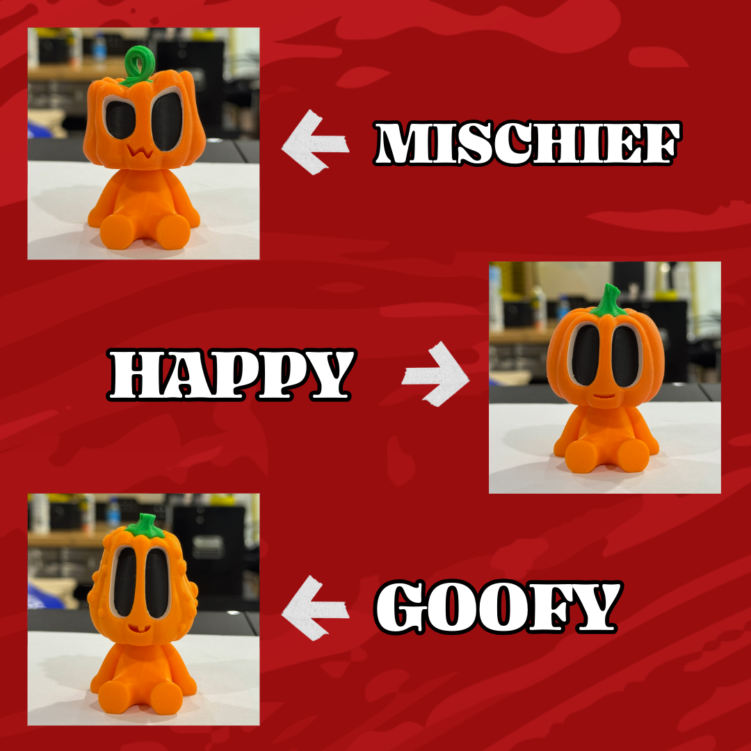 Design your own perfect Halloween decoration with our Build-A-Pumpkin! With 3 different variations of faces and body styles, you can mix and match to create up to 9 variations of spooky pumpkin friends that are completely unique to you. Each pumpkin is 3D printed in high-quality PLA and reusable year after year.